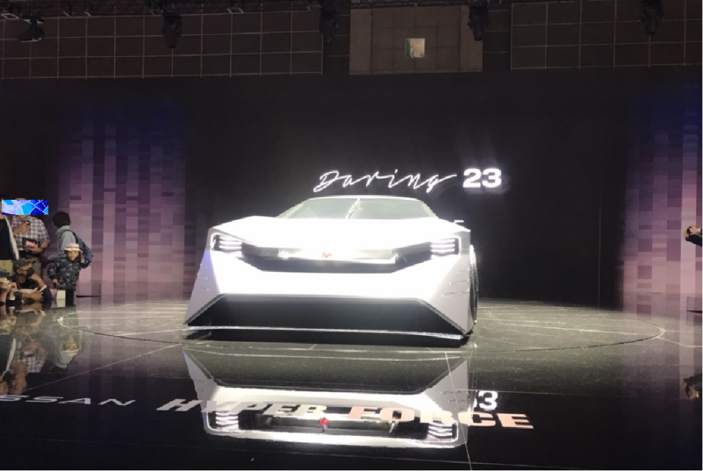 これは【ニッサン ハイパーフォース】というモデルで、日産ブースでは今回これが一番のおすすめ。究極のハイパーEVスポーツカーとのこと。