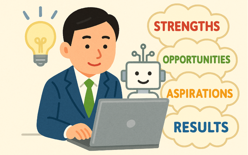 フレームワークで言えば、SOAR分析(Strengths・Opportunities・Aspirations・Results)を支える「効率的な情報インプット基盤」をAIで築くことが可能です。