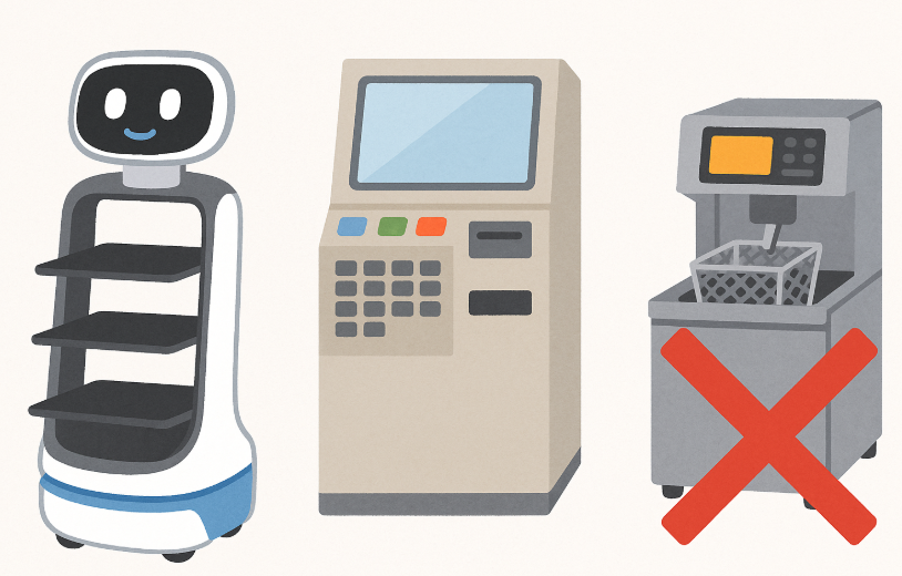 - 飲食店: 配膳ロボット、券売機、自動フライヤー